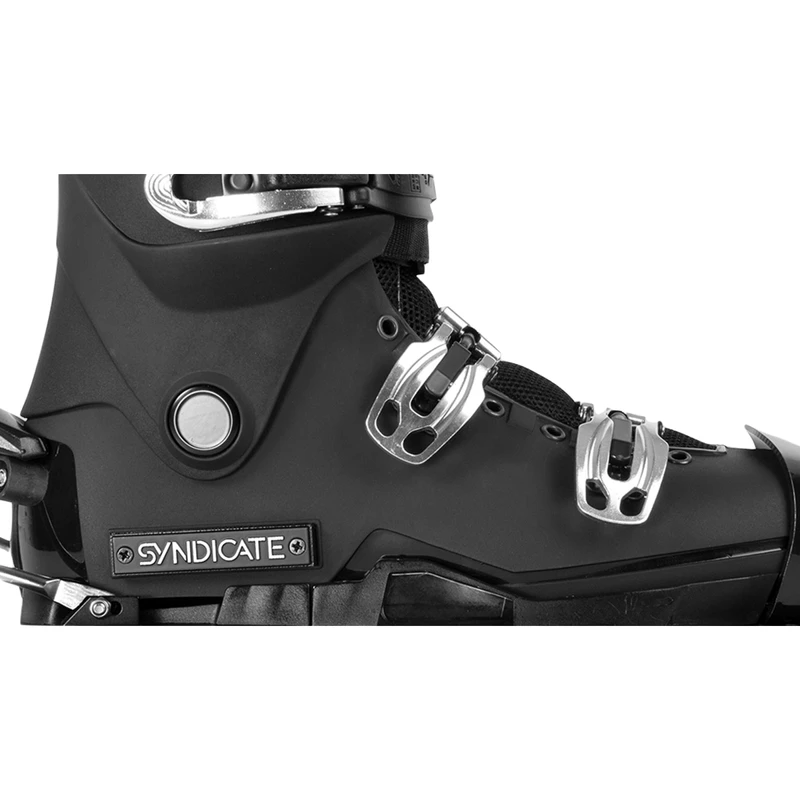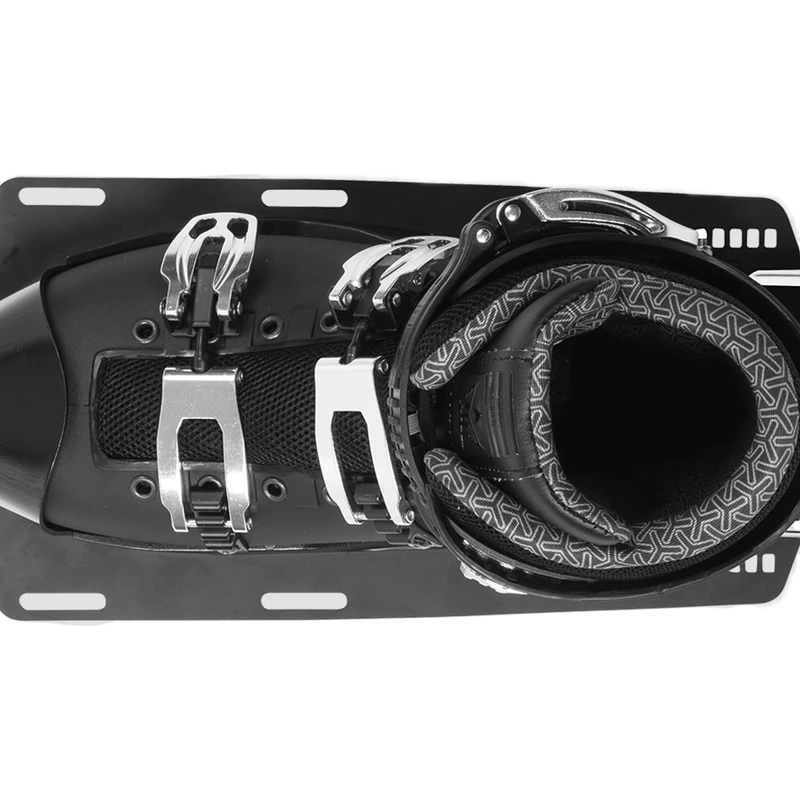 The Syndicate Hardshell Boot & Binding System is the latest step into the future of competition waterski gear. The top choice of tournament slalom skiers around the world for its reliable performance, this release mechanism employs an adjustable spring loaded heel unit that allows for tension release point modification in relation to skier weight and preference. Hardshell reliability is now paired with top of the line agility by employing our Full Contact Outsole. With added durability to the Full Contact Outsole due to its Injection Molded construction, this contoured heel and toe zone enables full contact between boot and plate thereby stabilizing the connection by reducing lateral slippage and increasing agility. For maximum comfort and cushioning we’ve employed an Ultralon Foam Heat-Moldable Liner with a Protective Outsole, allowing for a personalized fit that contours to your foot shape for the best fit and feel in the industry. This liner has become a top choice of pro skiers due to it’s fit and reinforced hingepoints, allowing for less wear & tear in those spots most likely to breakdown through extended use. In addition, we’ve added a Velcro ankle strap to keep your liners on your feet. The light weight yet reliable snow ski inspired boot buckles allow for personalized tightening. Use the buckle ladder to tighten or spin the buckle for a more customized fit. The Memory Buckle allows you to get a consistent tightness on the upper cuff every time you ski. We’ve added surface area and 50% more thickness to the Protective Coated Stainless Steel Toe Hoop, adding even more reliability to the system. It’s Universal G10 Plate keeps it light weight while working virtually all other ski manufacturer hole patterns. For 2021, We’ve updated the Heel Release Mechanism with a Stainless Steel finish, making it longer lasting even in salt or brackish water. In addition, the new Stainless Steel Release Arms are more vertically angled to better keep the heel solidly connected to the plate. This also provides more room for the backfoot, for those who prefer a narrower stance or those with a taller back boot toe.