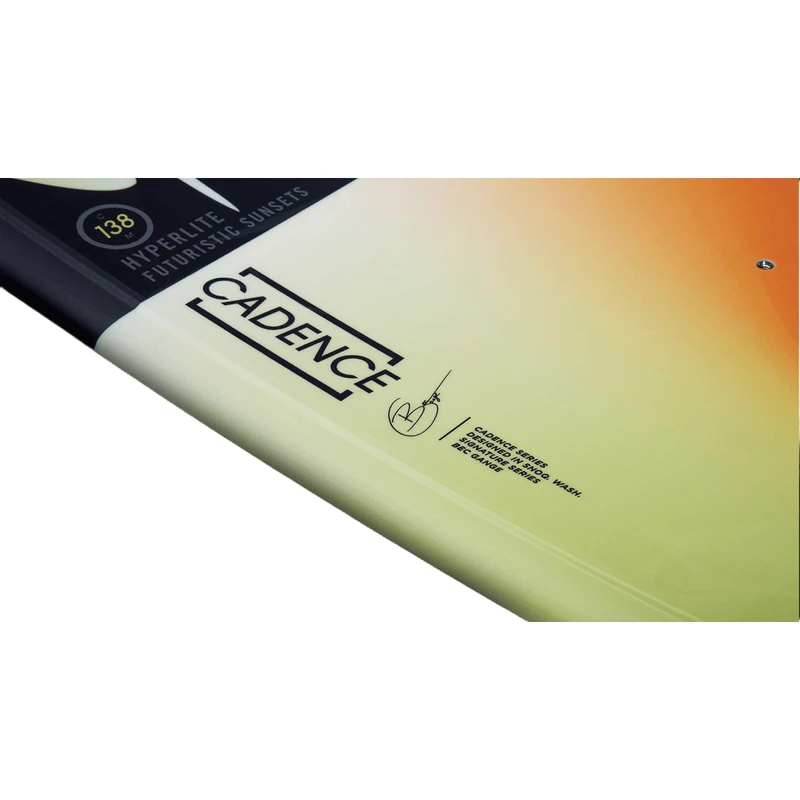 The Cadence series yields quick edge response and aggressive feel with massive pop off the wake shaped by Greg Nelson in conjunction with Bec Gange. The Cadence is a fast board incorporating a continuous rocker and slightly wider profile utilizing Hyperlite’s Satin Flex for female athletes. The shape includes a subtle landing feature in the belly transitioning to dual concave tunnels exiting the tip & tail for an aggressive approach to the wake. The variable edge design is bevelled between the stance platform for a forgiving feel sharpening at tip & tail for secure edging. Bec enjoys the explosive pop off the wake and effortless carving making it easy to link tricks back to back.