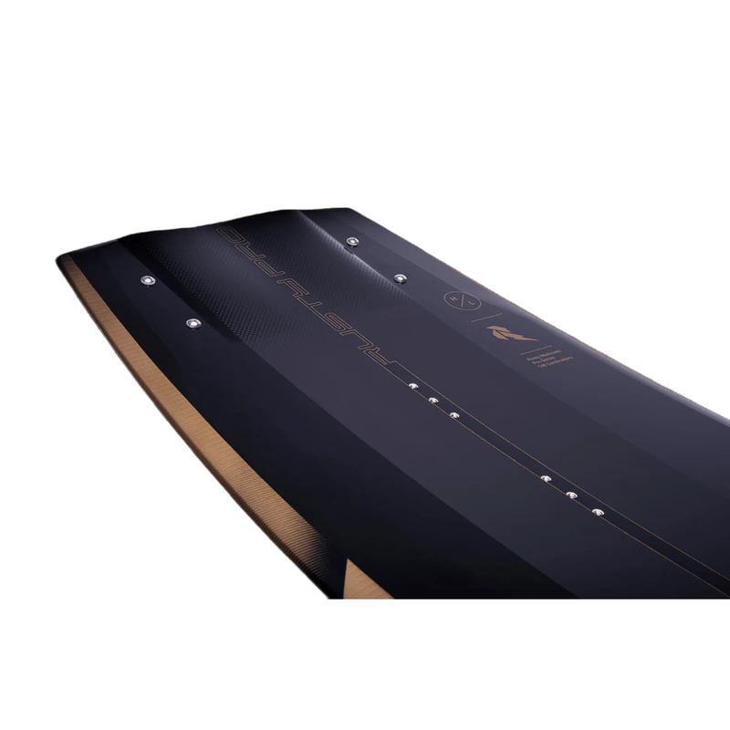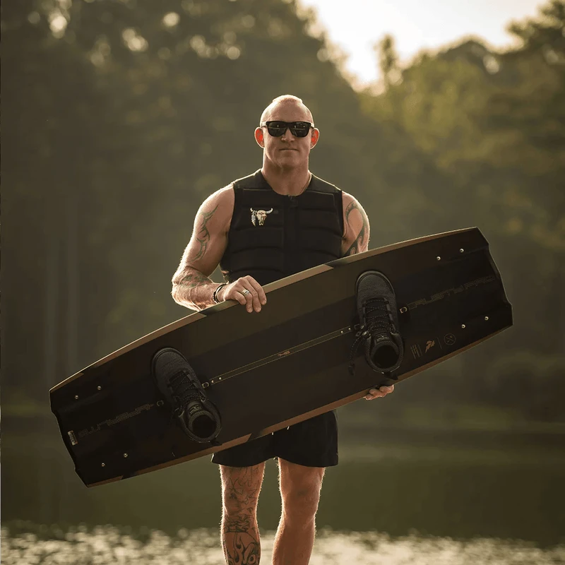 Size matters according to Rusty Malinoski. His new Rusty Pro wakeboard shape provides the surface area for massive airs but he says “My board feels lighter than anything I’ve ever ridden.” With more length comes a wider overall profile, creating a more poppy feel, “Light & poppy & snappy” says Rusty. As with previous shapes from Aaron Stumpf for Rusty, this board will take you swiftly to the wake holding edge all the way. New for Rusty is a set of shorter .7″ SS Beam Fins, which when desired will allow you to break free or save landings when you’re a tad off the mark.