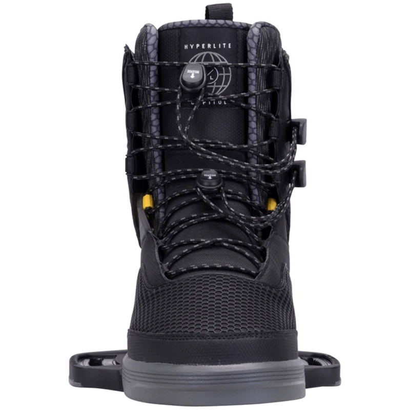 Designing the most advanced Fusion Plate wakeboard binding was the driving force behind Hyperlite’s new Capitol. Featuring a taller and more supportive cuff, the Capitol binding is perfect for boat riders who prefer a more locked-in feel. The Internal Ankle Harness ensures a snug fit with minimal heel lift, and the new RPU panel construction provides additional structure in a lighter overall package. Customize the 3D Heat Moldable Pro Liner to match your foot perfectly and enjoy the cushy feel of the new Capitol binding, chock-full of impact protection features.