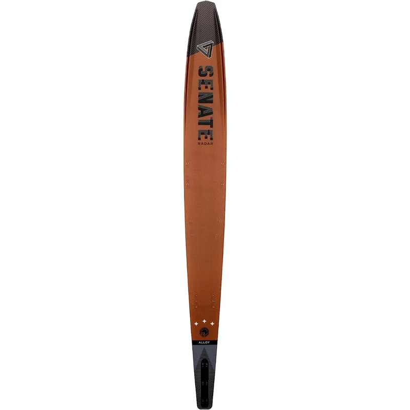 The Senateās ability to carry speed is unmatched in the industry. This speed allows the skier to maintain width on the boat ultimately giving a sense of freedom sought after by those that ski in the course as well as those ripping open water turns. By taking theĀ Vapor shape and adding two tenths of an inch in extra width RadarĀ have created a stable riding platform. This platform creates the balance needed for a skier to feel at home, while the profile of the ski allows the skier to feel the speed and angle sought after at any level.Ā Ā