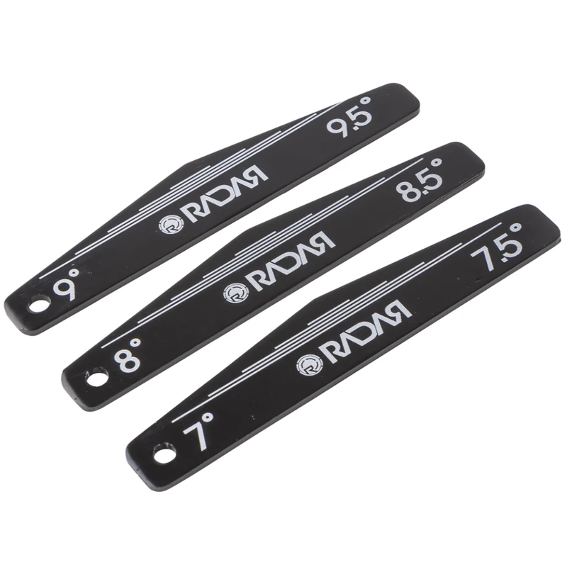 Set your water ski fin wing angle to 7, 7.5, 8, 8.5, 9 or 9.5 degrees wth the Radar Wing Angle Gauge Kit.