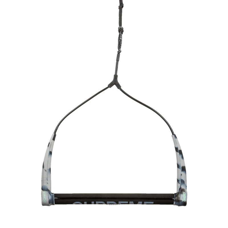 The 2022 Ronix Supreme Handle is a 1.15″ wakeboard style handle that features 15″ extra tacky hide grip material with silicone seam grip closure, EVA inside handlebar for flotation, and a Dyneema BarLock for less handle rotation.