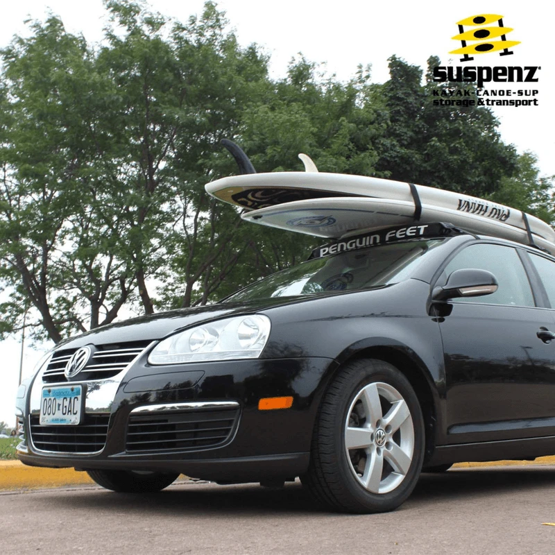 Adventure made easy! The Penguin Feet Rack by Suspenz is a premium removable rack system for hauling all of your equipment, including SUPs, surfboards, skis, ladders, and more. This soft car roof rack comes complete, no tools needed, and ready to go in minutes!