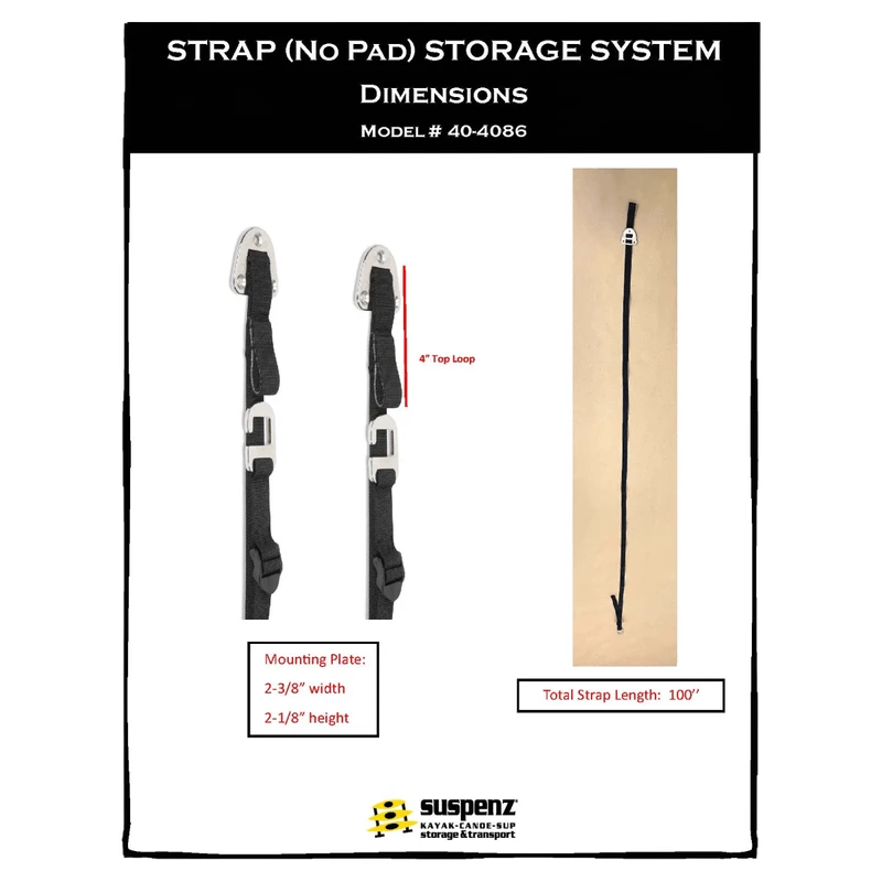 When you’re looking for an economical and simple way to store your watercraft, look towards the Strap Storage System! Your watercraft rests on these durable indoor and outdoor canoe storage straps; they can be installed virtually anywhere!
